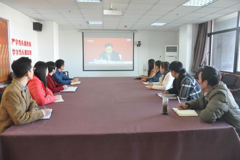11月12日上午10时,我院党委组织师生党员通过集中和分散的形式收看党的第十九届六中全会精神新闻发布会,部分师生党员在文博楼612A党员之家集中收看并认真学习全会公报精神。