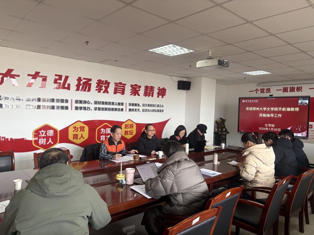 1月30日下午,郑州大学文学院特聘教授、博士生导师齐航福应邀在文博楼612A会议室,为我院教师做线上讲座,本次讲座主要以国家社科基金项目申报书的论证为主题。拟申报2026年国家社科基金项目的教师和部分博士教师参加会议。