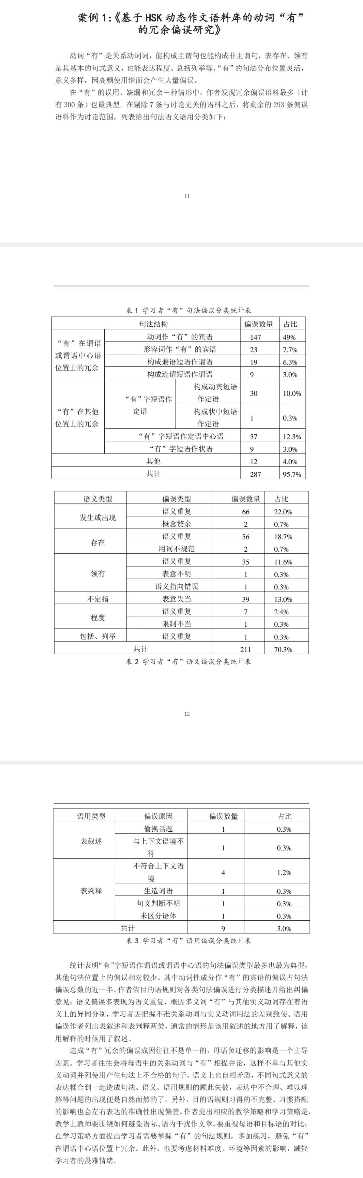 案例1 《基于HSK动态作文语料库的动词“有”的冗余偏误研究》