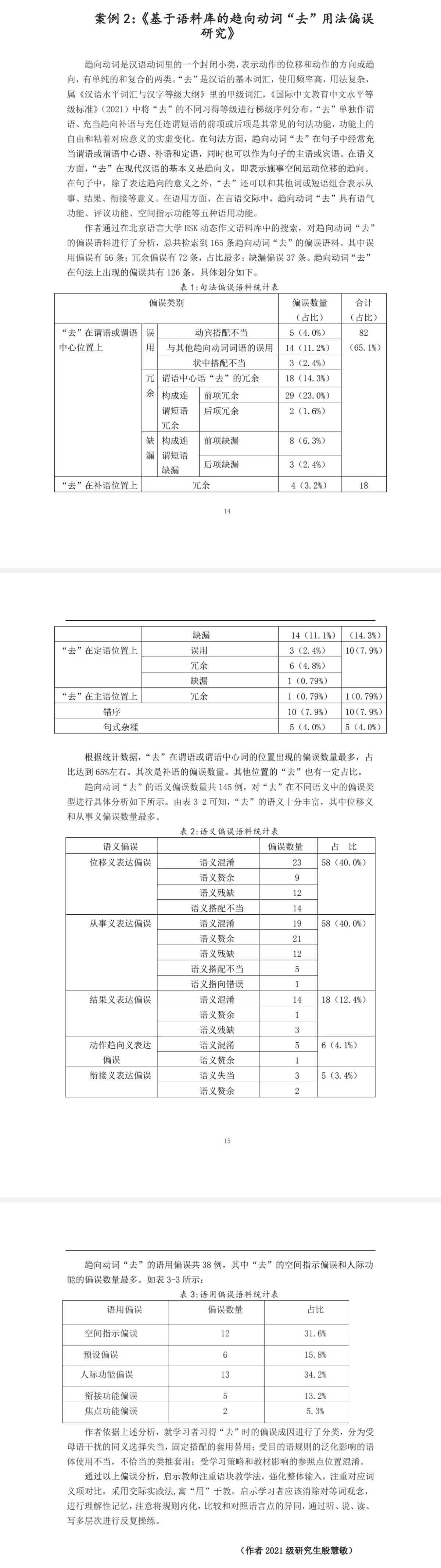 案例9 《基于 HSK 动态作文语料库的汉语趋向补语习得偏误分析》