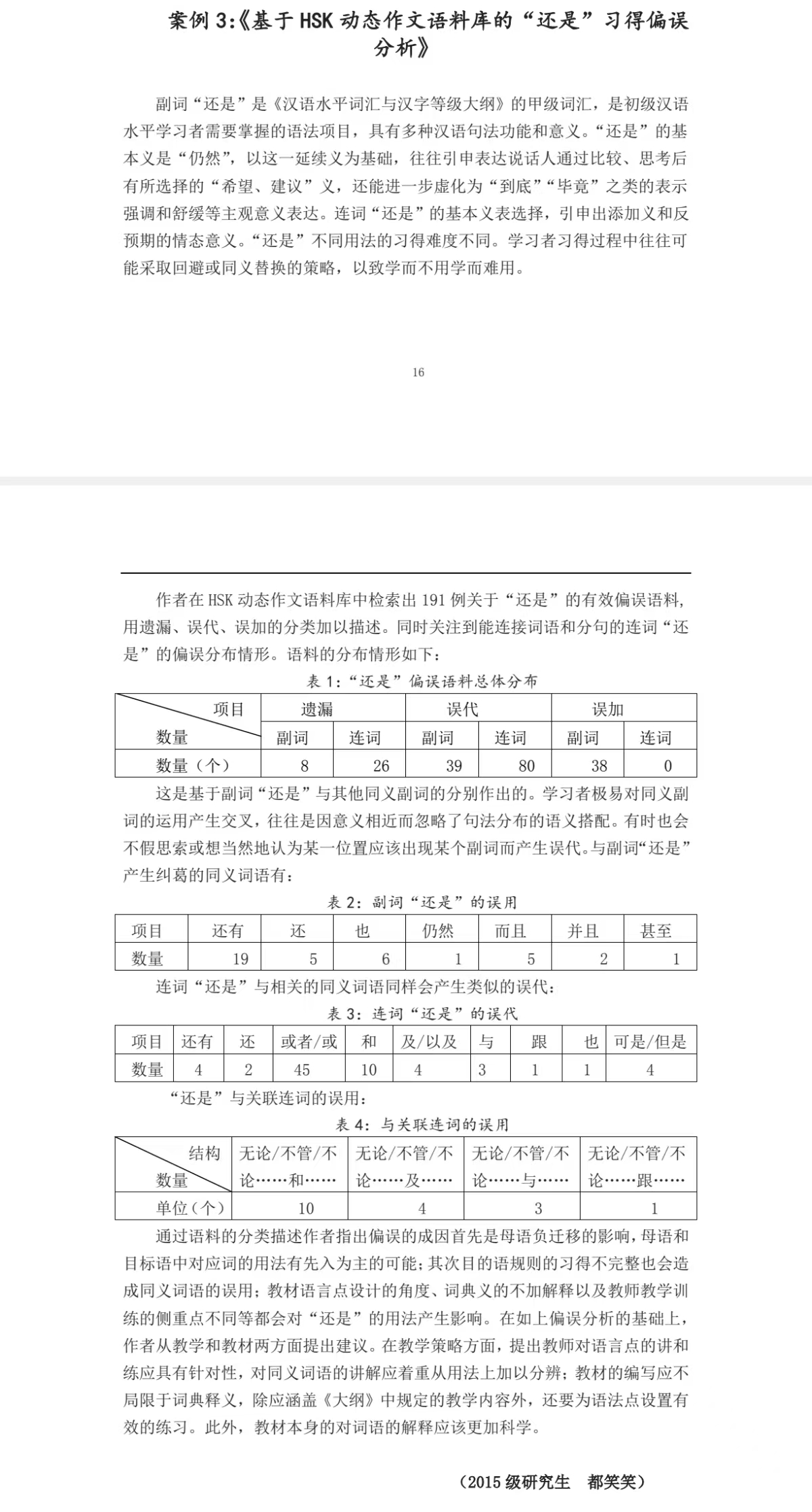案例3 《基于HSK动态作文语料库的“还是”习得偏误分析》
