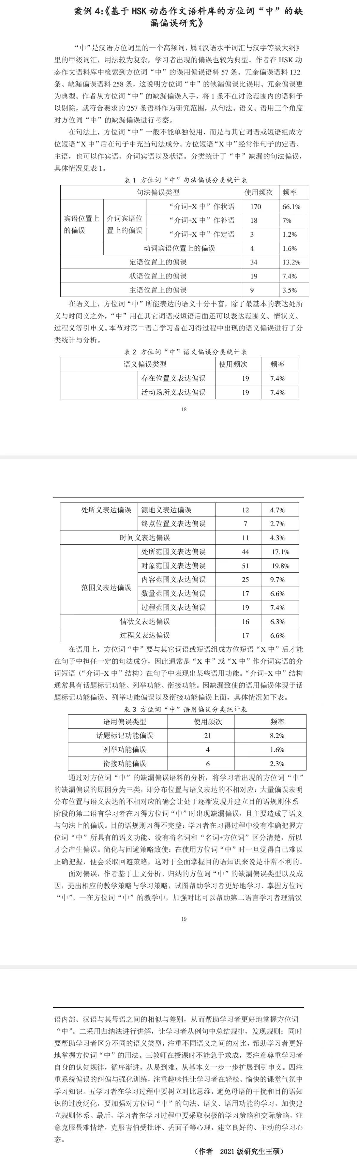 案例4 《基于 HSK动态作文语料库的方位词“中”的缺漏偏误研究》