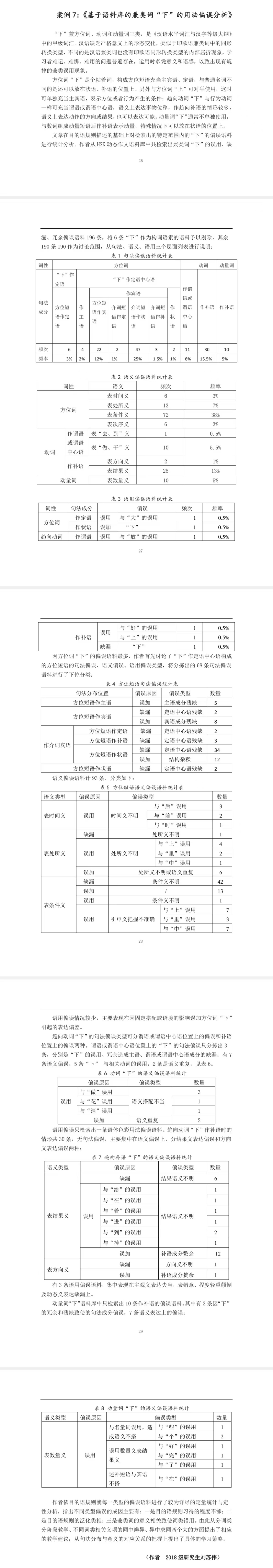 案例7 《基于语料库的兼类词“下”的用法偏误分析》