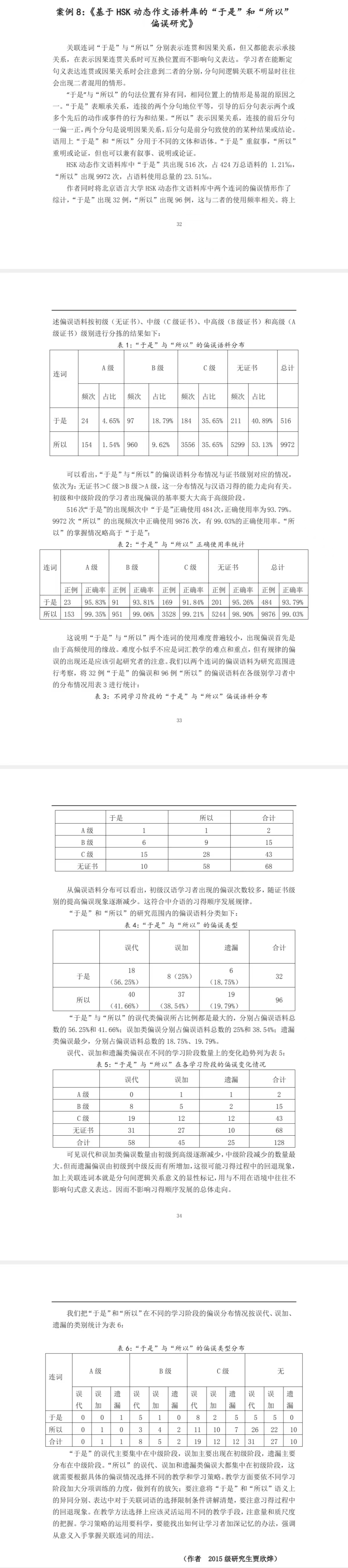 案例8 《基于 HSK动态作文语料库的“于是”和“所以”偏误研究》