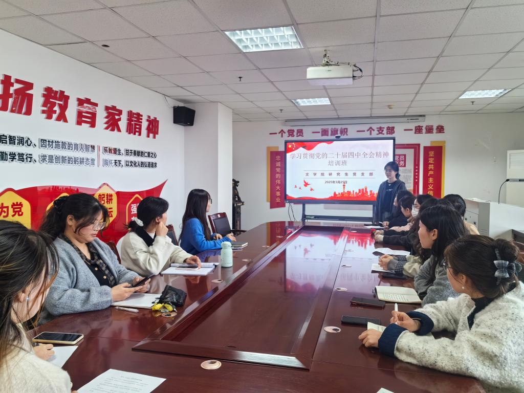 3月25日至3月26日,为深入学习贯彻党的二十届四中全会精神,深刻领会“十五五”规划的核心要义,我院研究生党支部于文博北楼612A开展学习贯彻党的二十届四中全会精神专题培训班,支部全体党员参与本次学习。