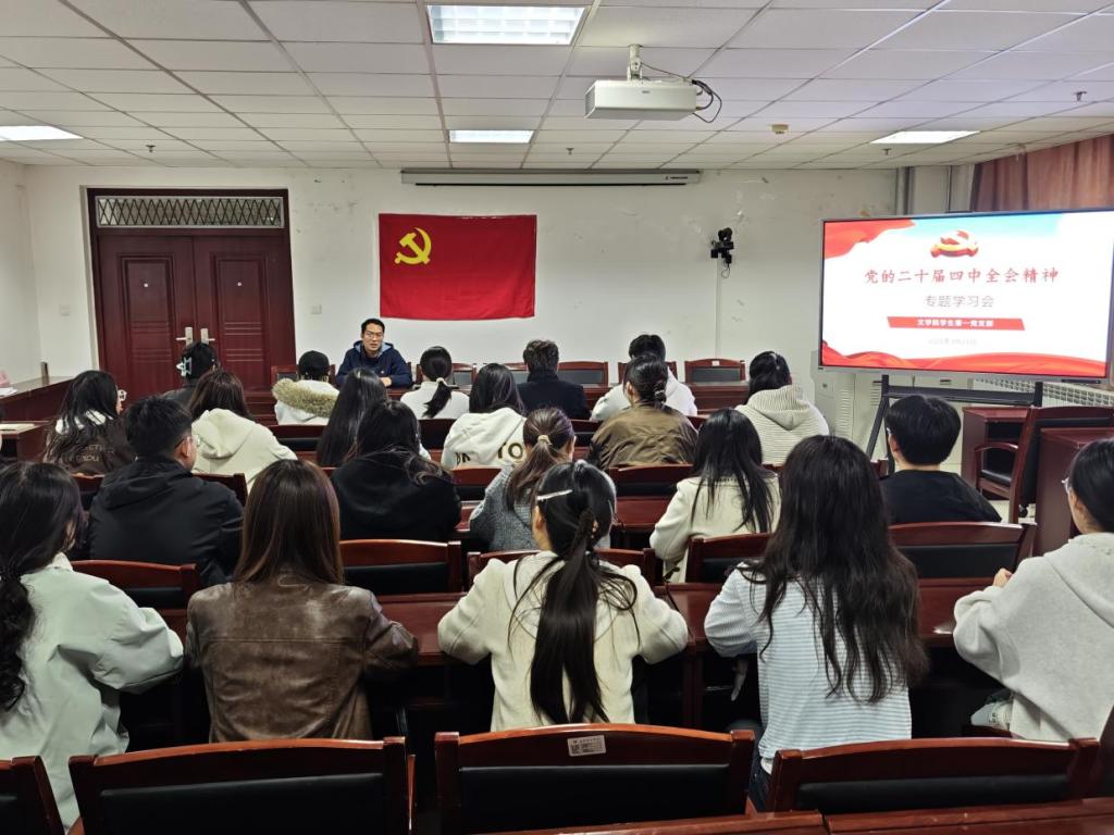 为深入学习贯彻党的二十届四中全会精神,切实把支部党员的思想和行动统一到全会部署要求上来,3月26日下午,我院学生第一党支部在文博北楼612B开展党的二十届四中全会精神专题学习会。会议由支部书记赵金龙主持,支部全体党员参加。