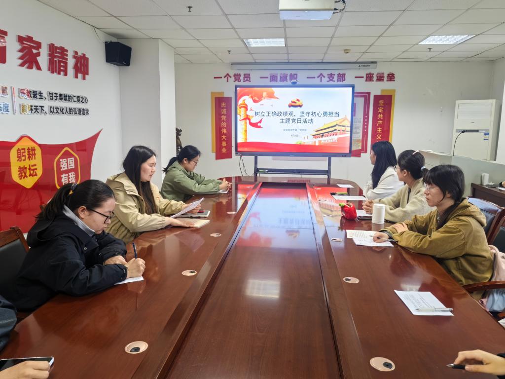 为深入学习贯彻正确政绩观重要论述,强化青年党员责任担当,4月8日下午,我院学生第三党支部在文博北楼612A会议室开展“树立正确政绩观 砥砺实干勇担当”主题党日活动。本次活动由支部书记赵蒙蒙主持,支部全体党员和积极分子参加。