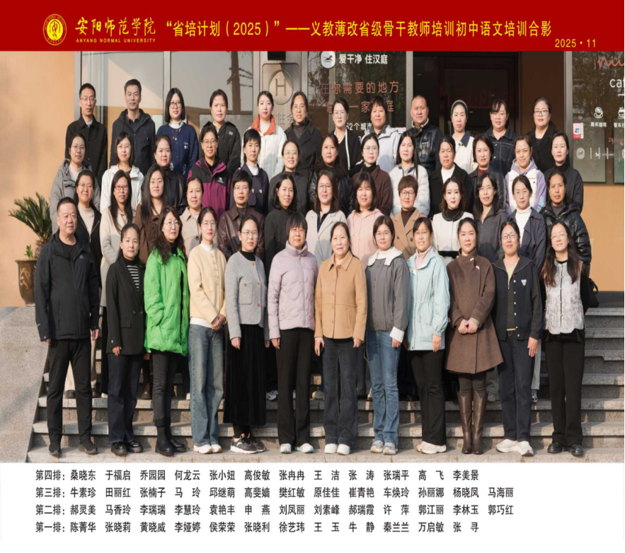 2025年10月24日至11月7日,由安阳师范学院文学院承办的“义教薄改”省级骨干教师培育项目初中语文班培训研修活动成功举行。本次培训研修活动汇聚了新乡、濮阳、鹤壁、安阳四地共49名深耕教学一线的初中语文教师,以“新课标要求下的初中语文教师核心素养发展及提升”为主题,通过系统化专题学习、汉字文化特色研学与名校跟岗实践等活动,为学员们提供前沿的教学理念、实用的教学策略与深刻的实践指导,为骨干教师搭建了赋能成长的优质平台。