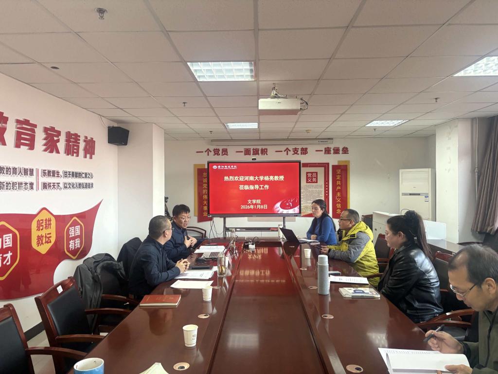 1月8日下午,河南大学文学院教授、博士生导师杨亮教授应邀在文博楼612会议室作就“国家社科基金项目申报与论证”进行指导。会议由院长张同利主持,拟申报国家社科基金项目负责人参加会议。