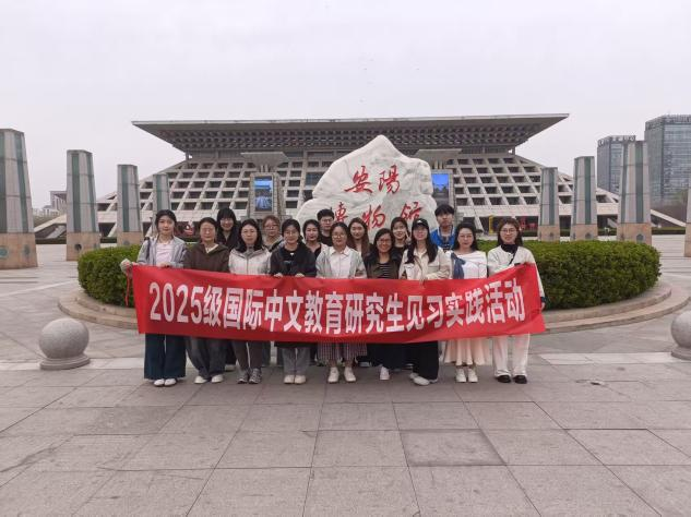 2026年3月25日,文学院2025级国际中文教育专业研究生在李玉雪老师的带领下,前往安阳博物馆开展实践教学活动。在专业讲解员的引导下,同学们穿梭于多个主题展览之间,多维度感知中华文化的博大精深,为国际中文教育的文化教学积累实践素材。