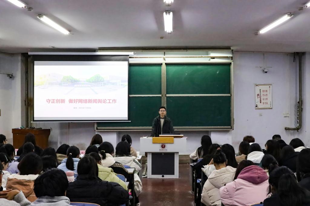 为强化我院团学干部的网络舆论素养与责任担当,11月4日,我院学工办副主任程杰在和展阶梯202教室开展了“守正创新,做好网络新闻舆论工作”主题讲座,我院全体团学干部参加。