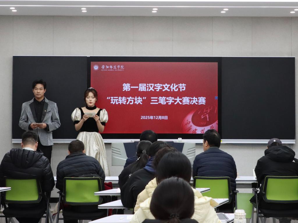 千年汉字,笔笔生辉;一脉文明,字字相传。12月8日上午,由安阳师范学院党委学工部主办、文学院承办的第一届汉字文化节“玩转方块”三笔字大赛决赛,在和鸣楼B610智慧教室顺利举办。教务处副处长张建雷,文学院现当代文学教师郭怀玉、古代文学教师王兆国,美术学院书法专业教师庞浩然、陈家毅担任本次比赛评委。文学院党委副书记汤伟、分团委副书记赵蒙蒙,以及辅导员赵金龙、李成佳出席本次活动。全体晋级决赛的学子同台竞技、共展笔墨才情。