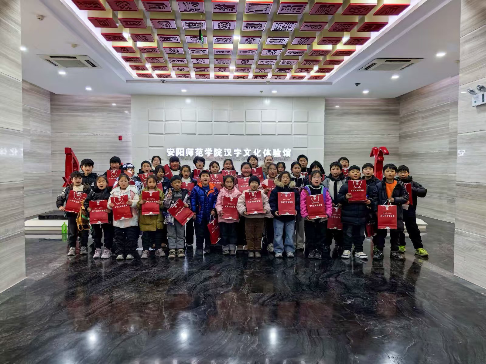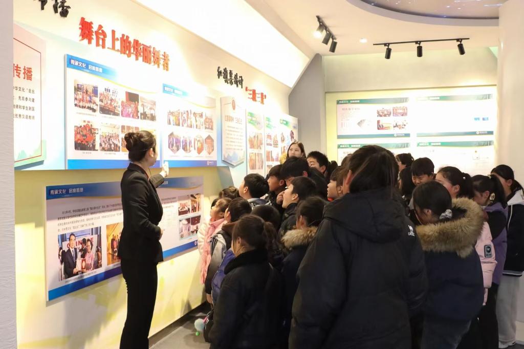 在校史馆,通过观看丰富的图文资料和实物展品,小学生们系统了解了我校的办学历史与发展成就,初步建立起对高等教育的直观认识,埋下了大学梦的种子。“三融三进”馆内,借助历史图片和实物展示,孩子们深入学习了红旗渠精神,纷纷表示要以先辈为榜样,培养艰苦奋斗的意志品质。在殷墟文化馆,孩子们近距离接触珍贵文物,深刻感受到了安阳作为甲骨文故乡的深厚文化底蕴,激发了强烈的文化认同感与自豪感。来到汉字文化体验馆,孩子们在志愿者的指导下亲手完成了甲骨拓印,不仅收获了属于自己的传统工艺品,更在实践中加深了对汉字文化的理解。此外,在志愿者的带领下,来访师生游览了校园,实地感受了大学的学习与生活氛围。
